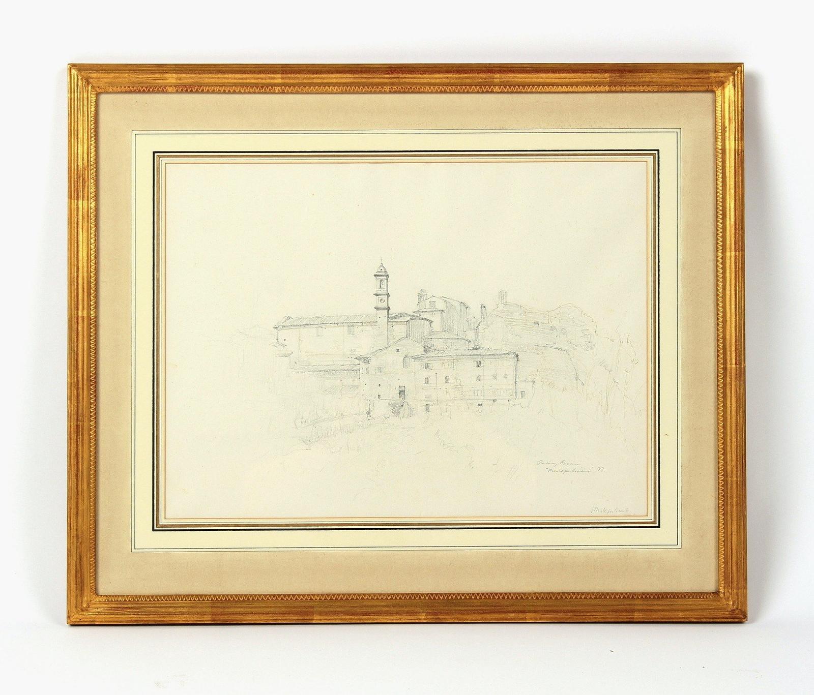 Signed Pencil Sketch of Montepulciano by Antony Bream 1977