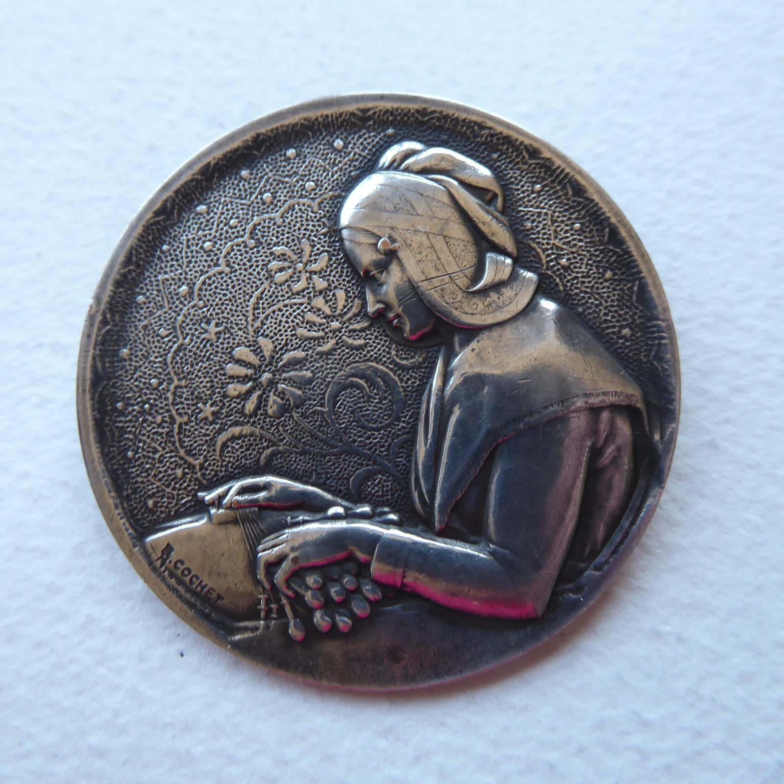 Signed Robert Cochet Art Nouveau Bronze Brooch