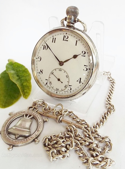 Silver 1930s Swiss Pocket Watch & Chain