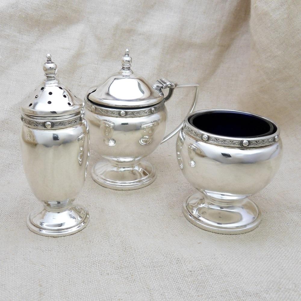 Silver 3 Piece Cruet Set with Liners by Mappin & Webb 1936
