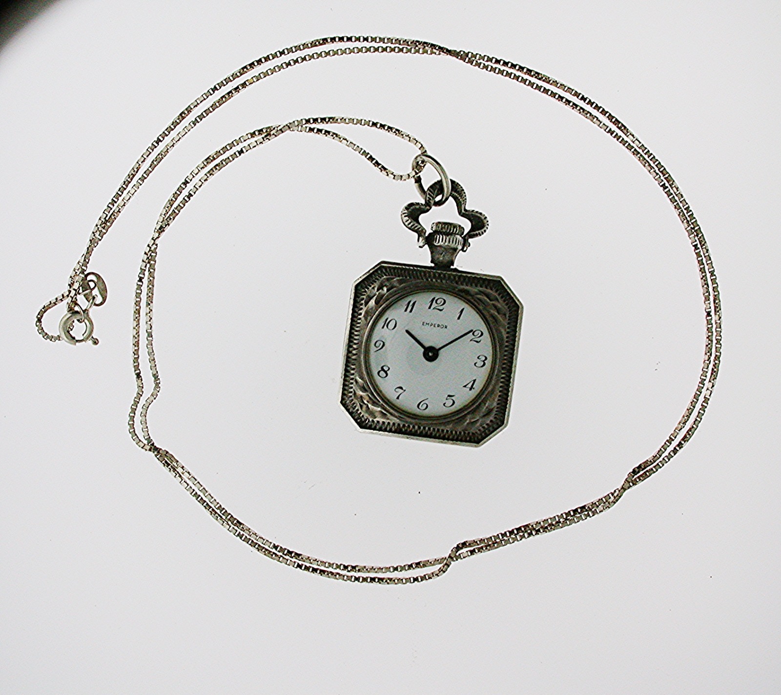 Silver 925 Open Face Square Pocket Watch with Silver 835 Chain (1 of 1)