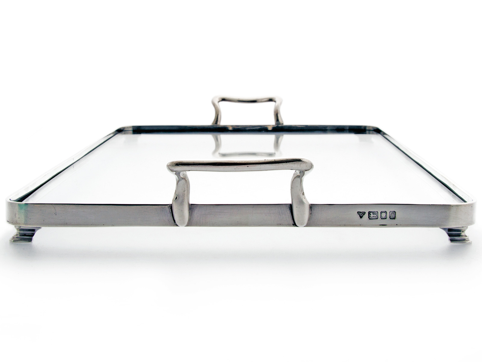 Silver and Glass Garrard and Co Rectangular Two Handle Tray (1 of 1)