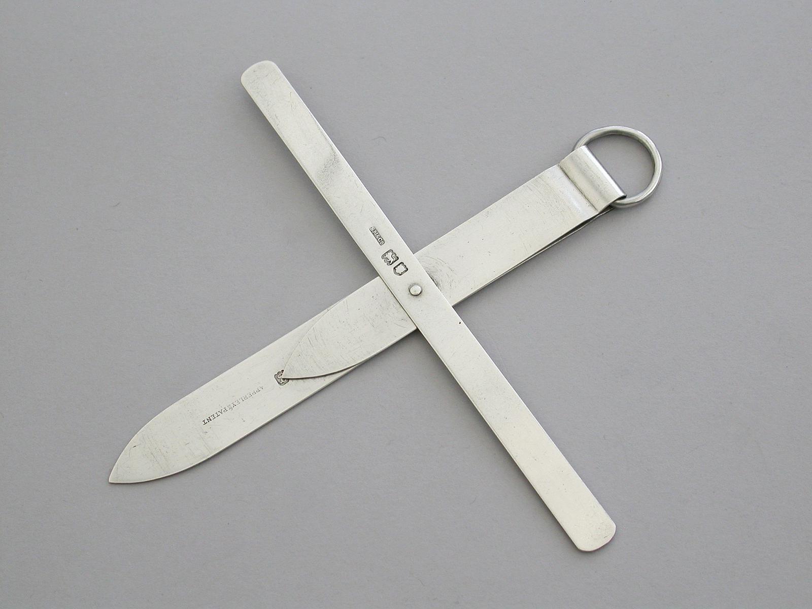 Silver "Apperley's Patent" Combination Bookmarker Leaf Holder & Paper Knife, by Sampson Mordan & Co, London, 1902