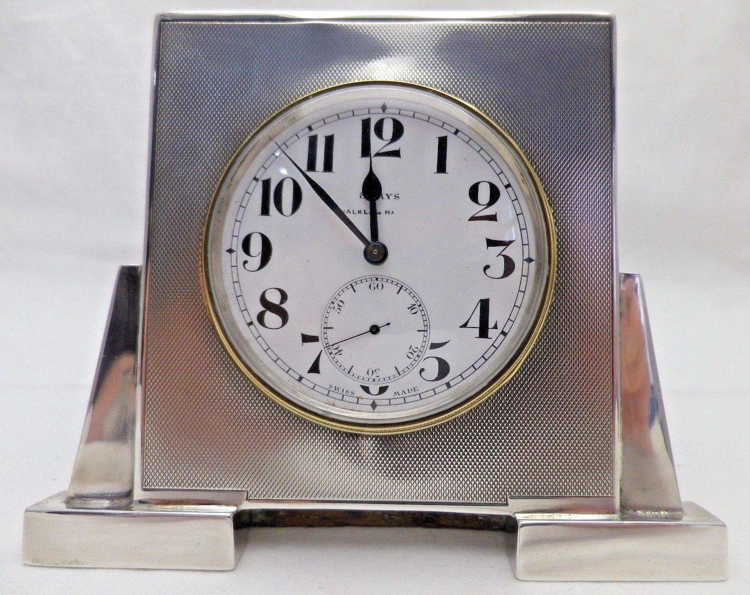 Silver Art Deco Desk Mantle Clock 8 Day by Walker & Hall