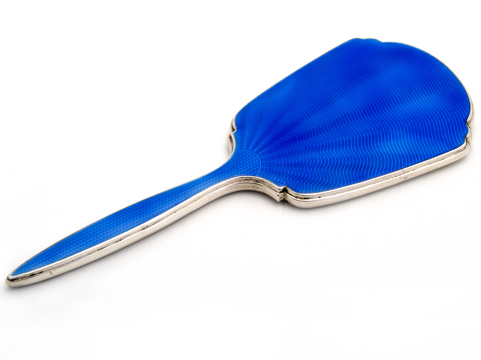 Silver Art Deco Style Blue Guilloche Enamel Hand Mirror