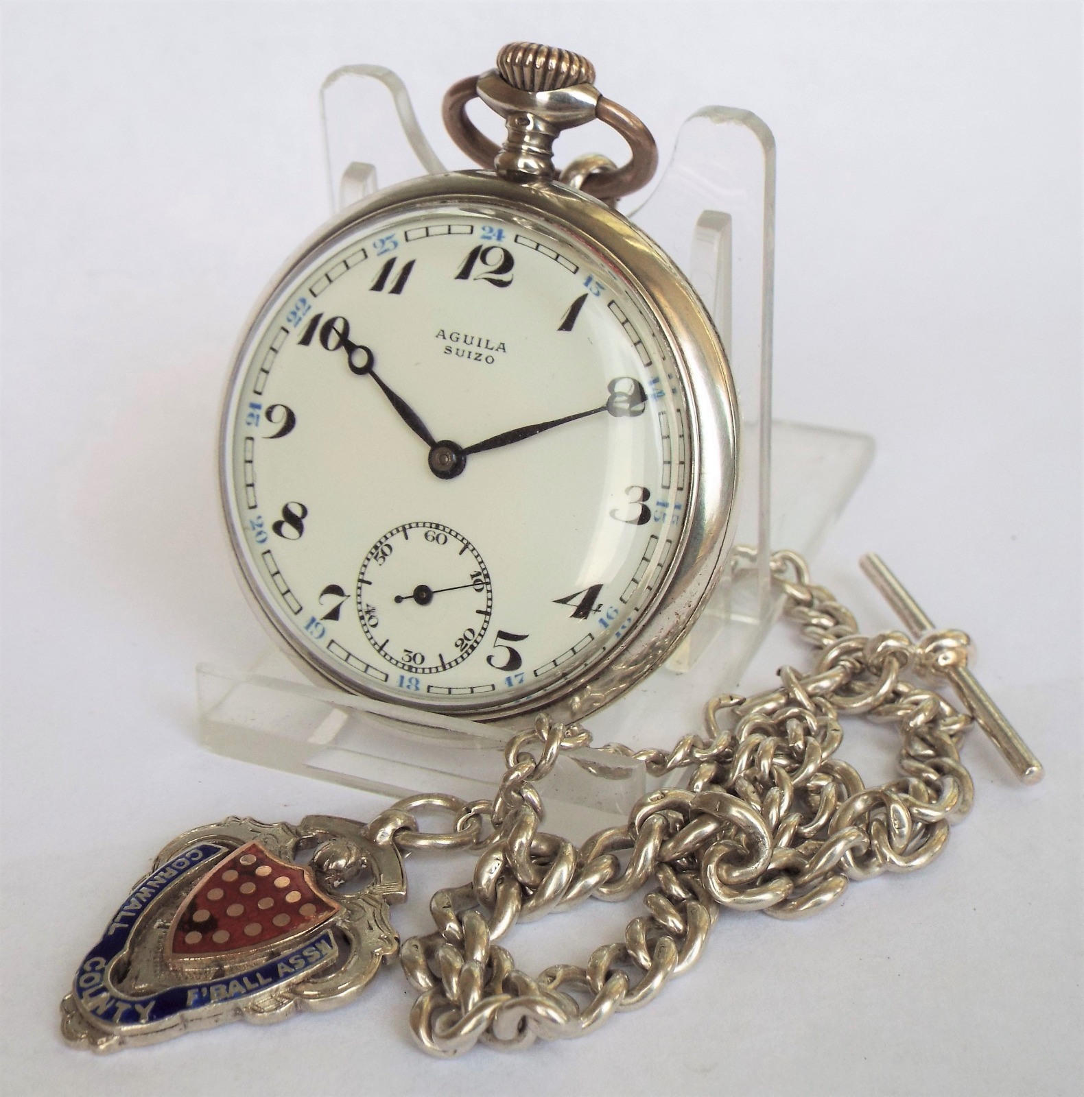 Silver Art Nouveau Aguila Suizo Watch & Chain