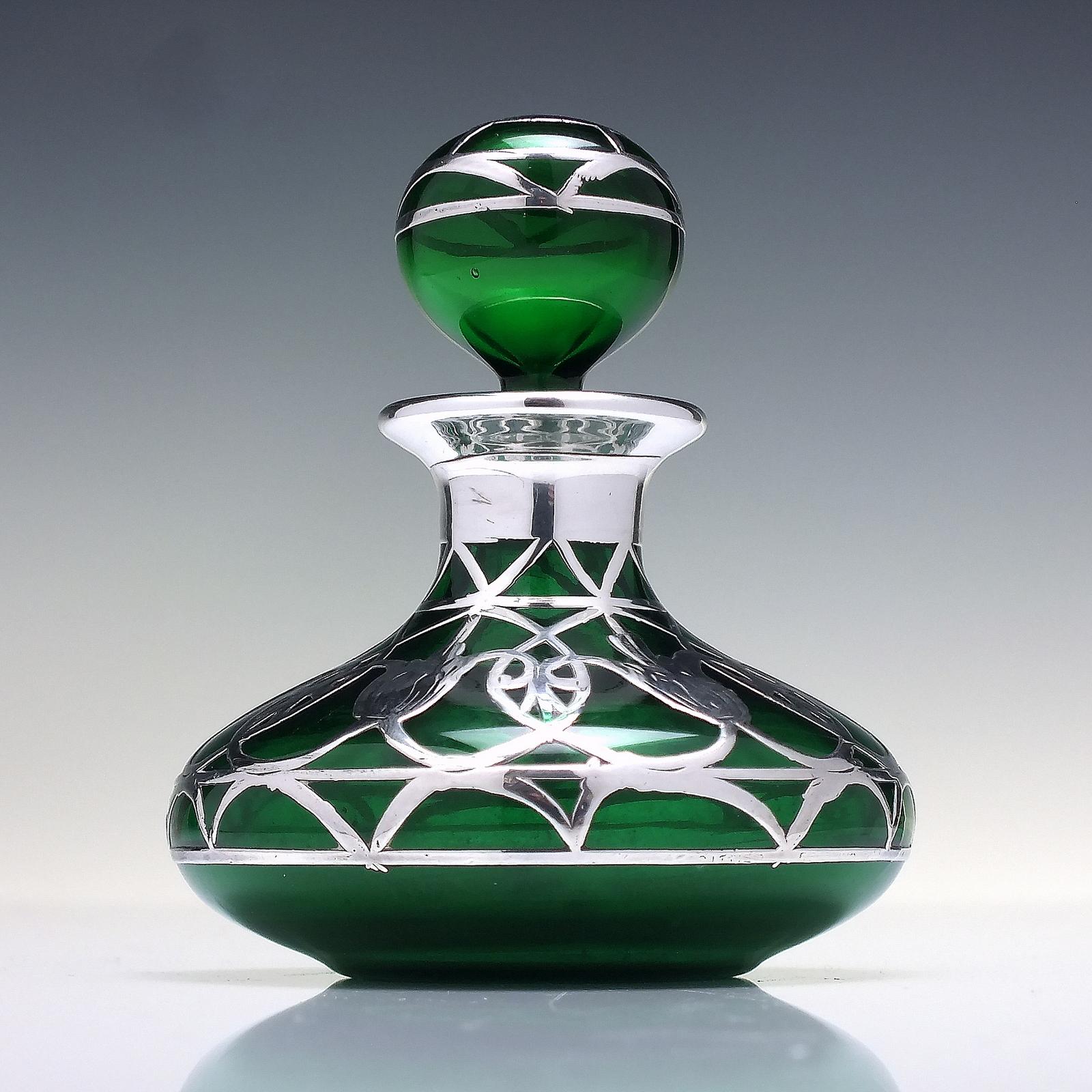 Silver Art Nouveau Green Glass Perfume Bottle c.1900