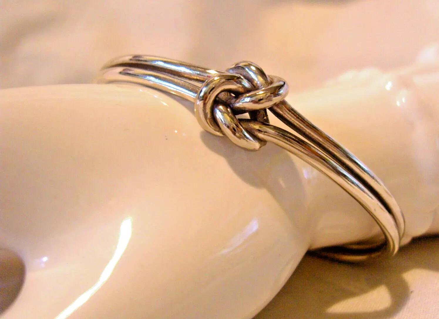 Silver Bangle Vintage 1980s Chunky Reef Knot Bracelet Nos