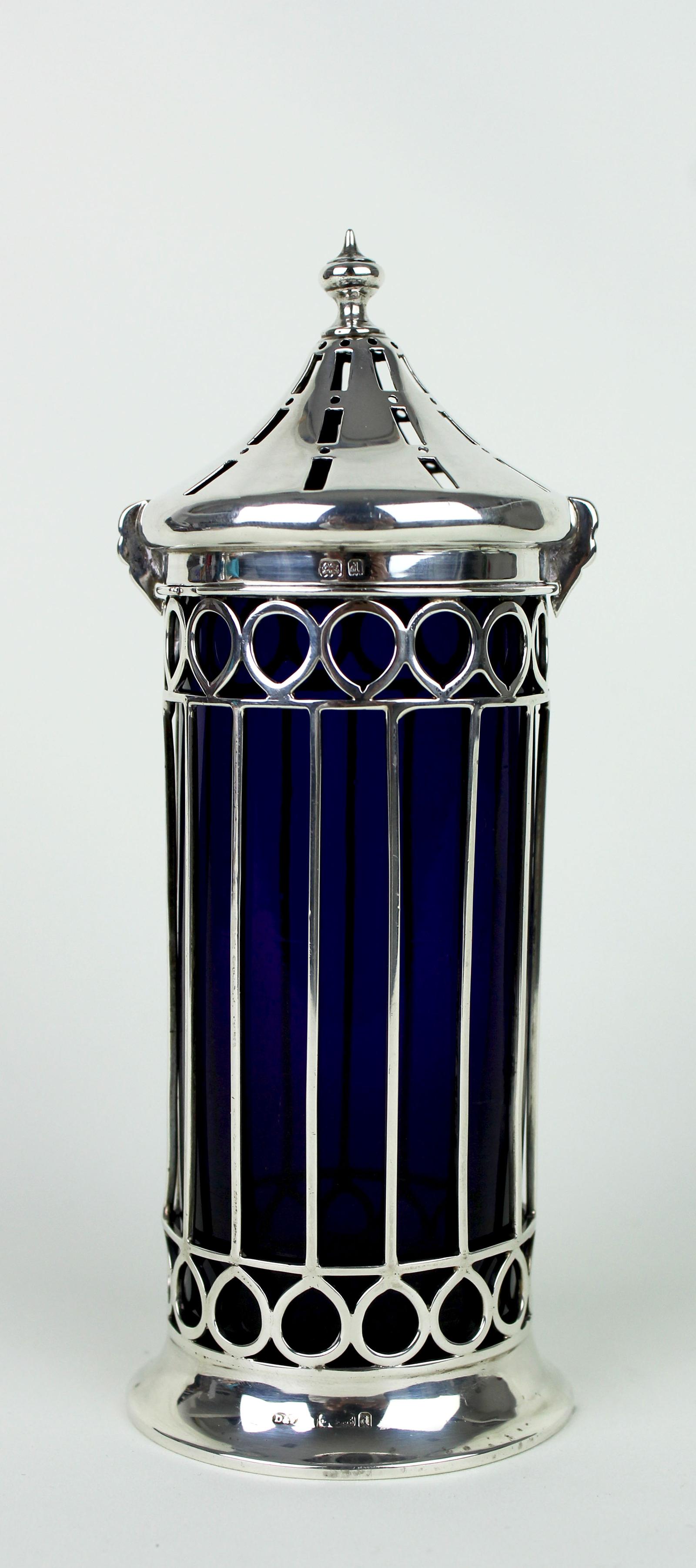 Silver & Blue Glass Sugar Caster