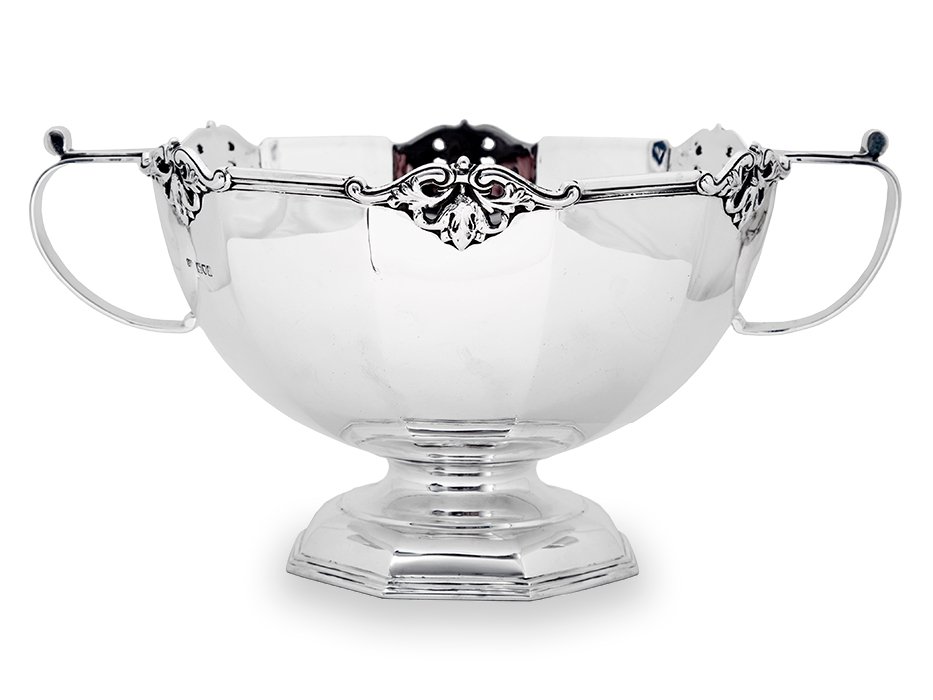 Silver Bowl with Floral Cast & Pierced Border + Two Bracket Handles (1 of 3)