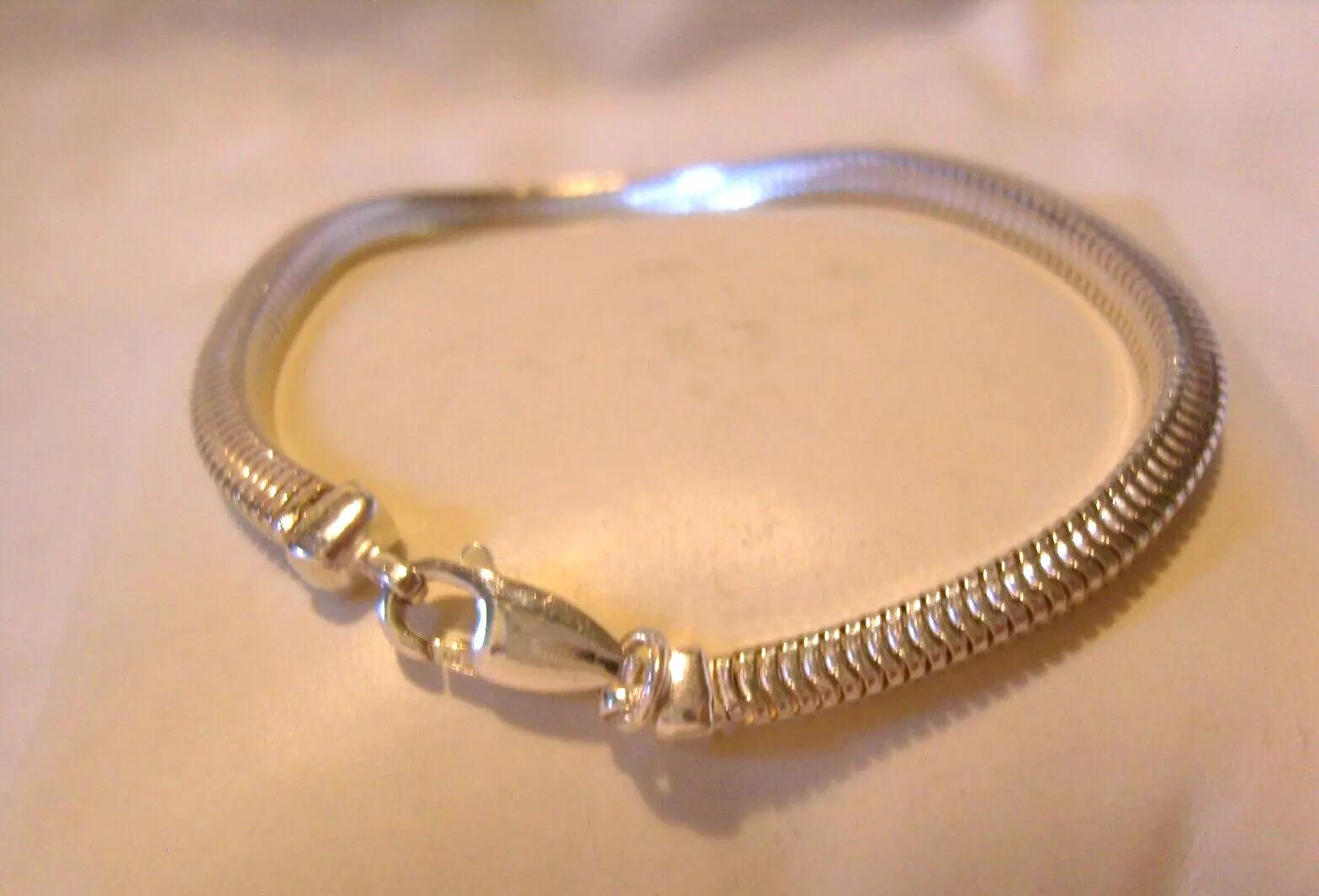 Silver Bracelet Nos 1970s Snake Link Vintage 925 Hallmarked 7 1/4" Length