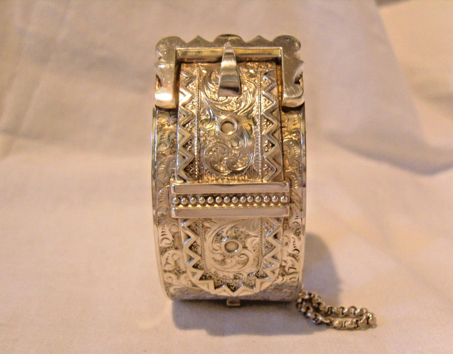 Silver Buckle Bangle Victorian 1890s Wide Antique Bracelet 7" Length 33.6g