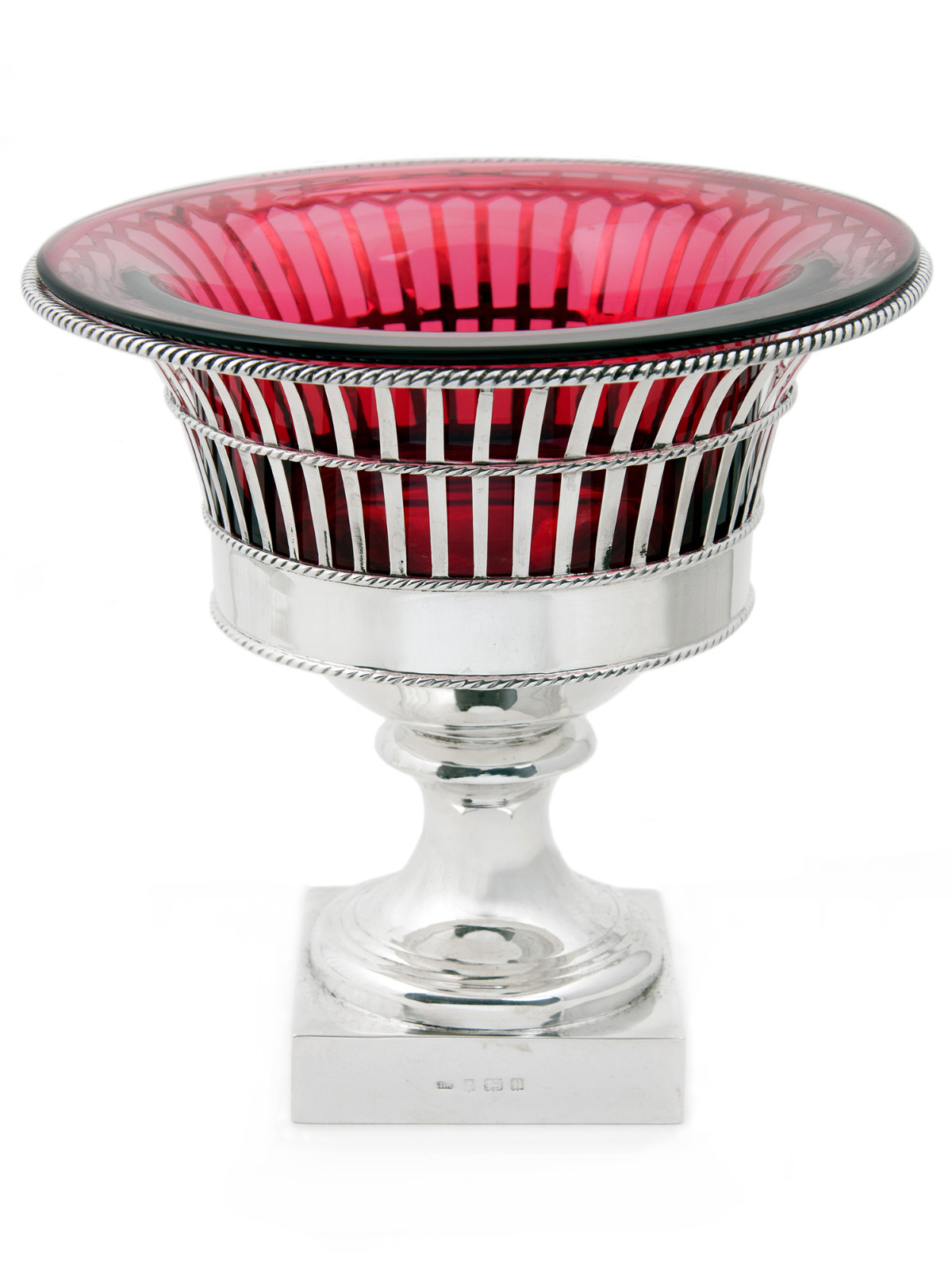Silver Campana Shaped Bowl or Vase with Ruby Glass Liner (1 of 6)