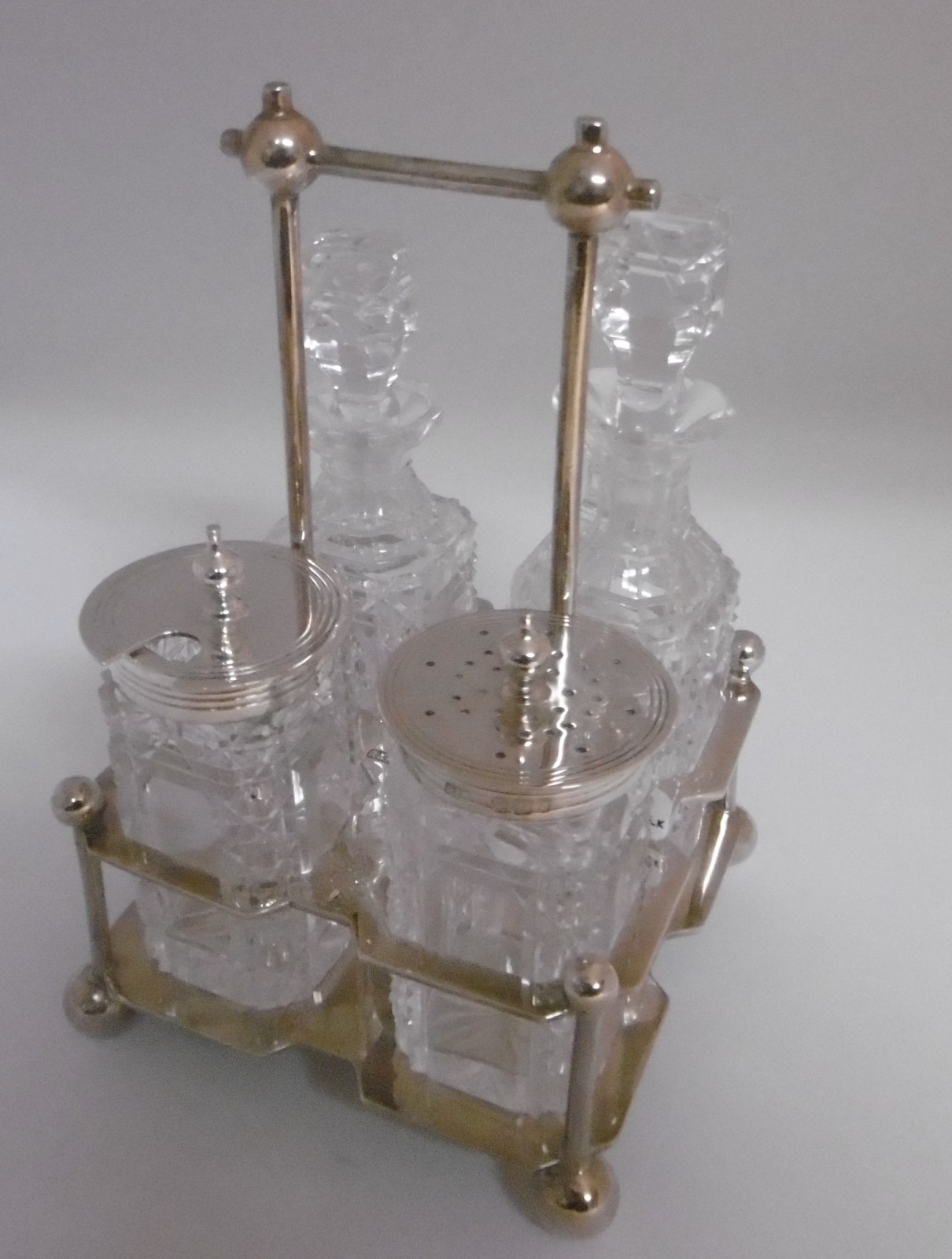 Silver & Cut Crystal Cruet in a Christopher Dresser Style