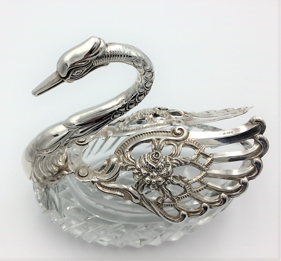 Silver & Cut Glass Swan Bowl For Sweets Trinkets or Dressing Table 1973
