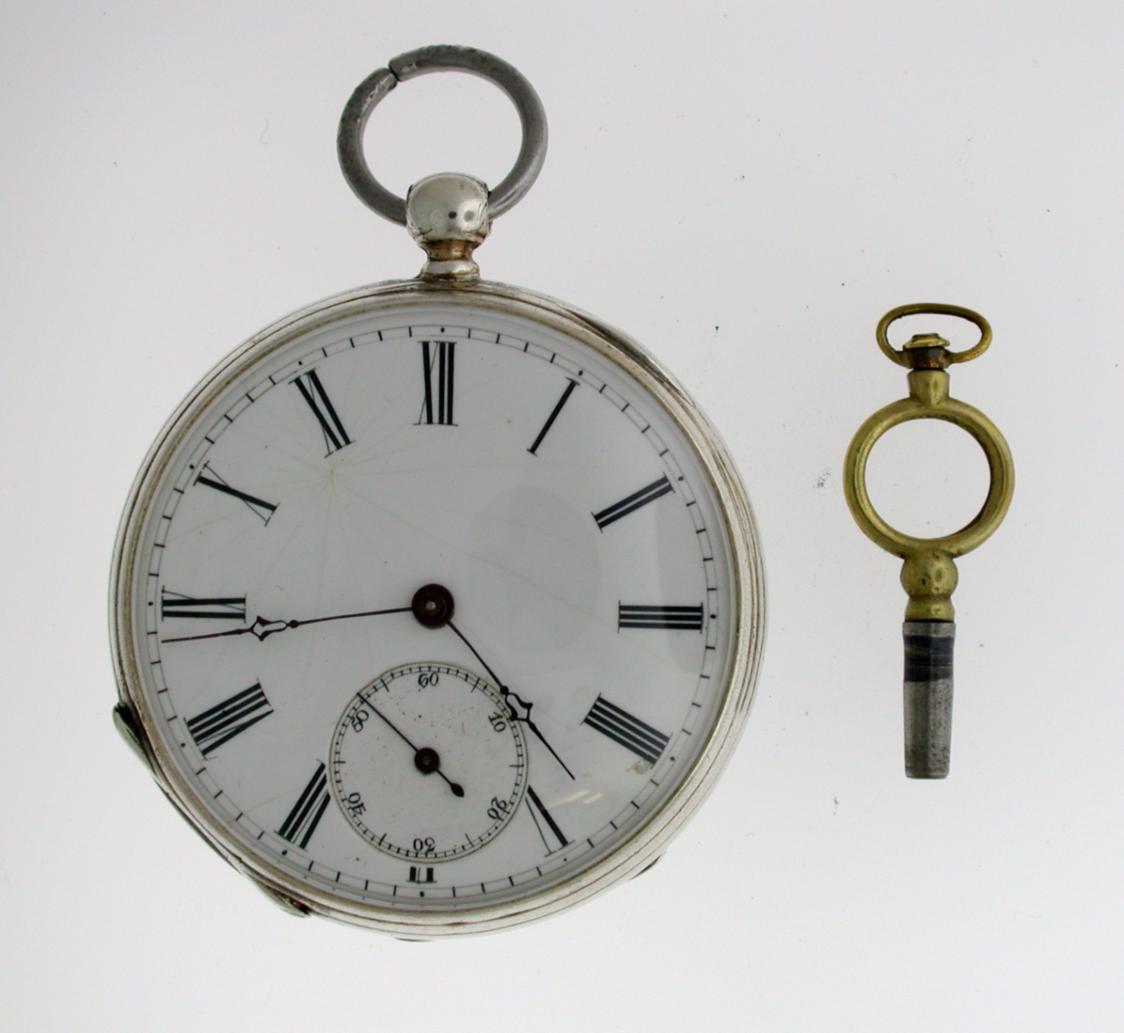Silver early Vacheron open face pocket watch with original key Swiss 1880