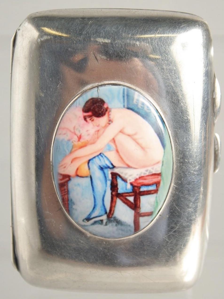 Silver & Enamel Cigarette Case Birmingham 1916 Nude Dancer