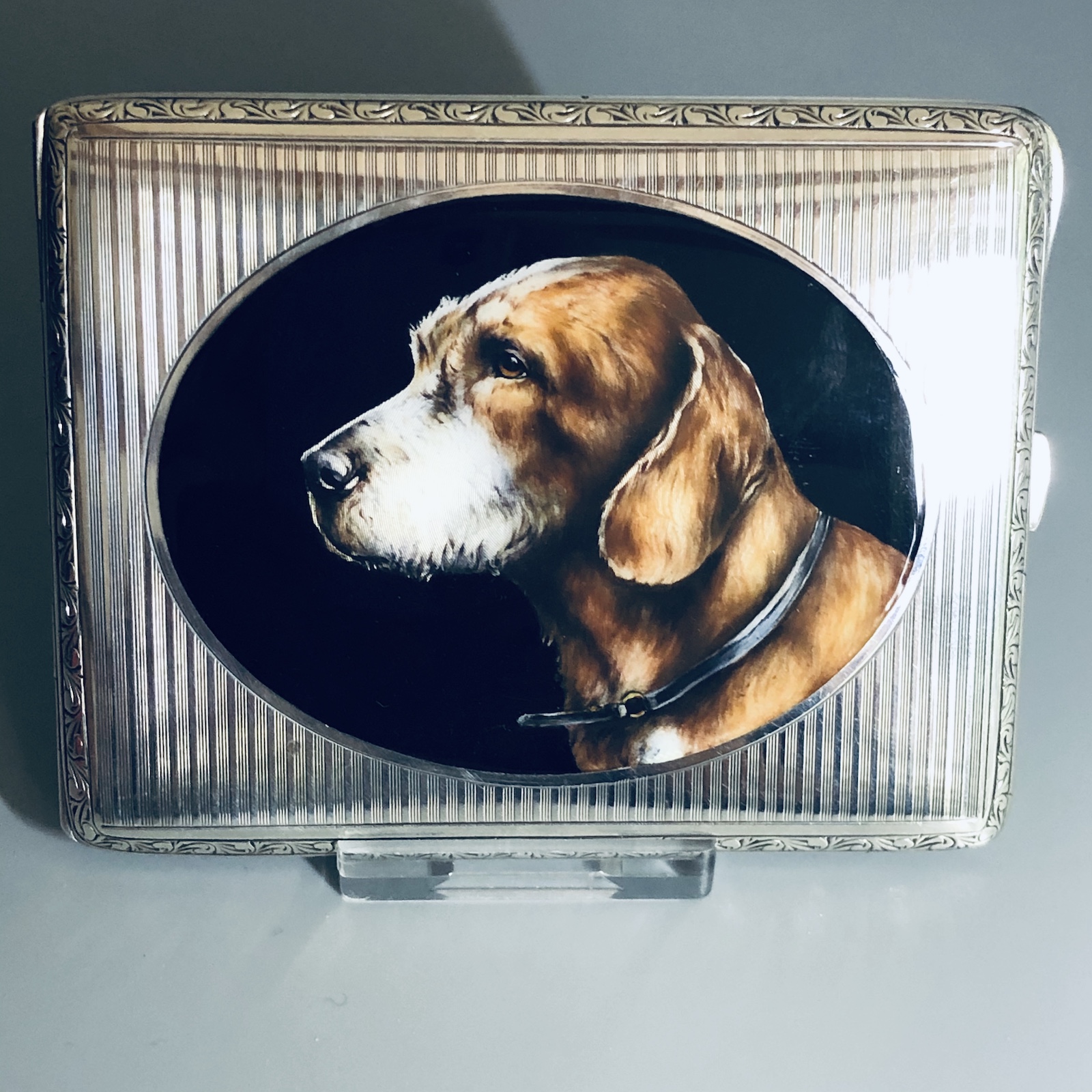 Silver & Enamel Cigarette Case with Picture of a Dog