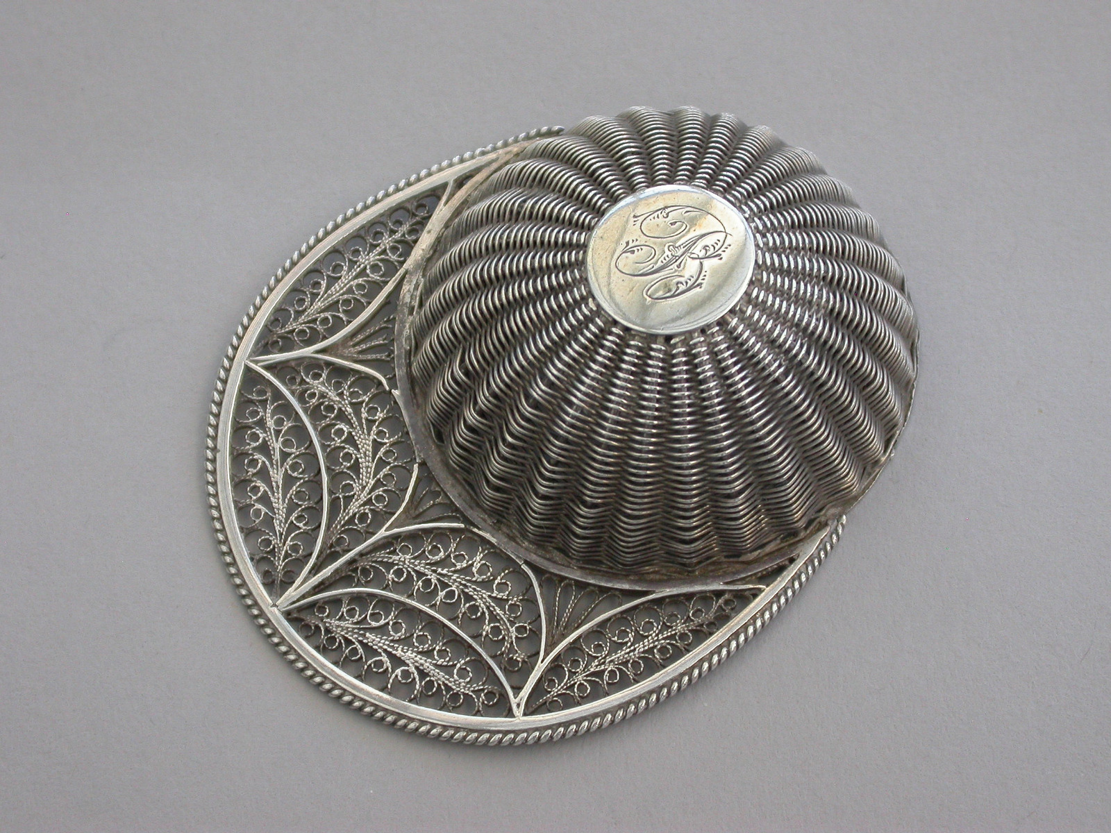 Silver Filigree Jockey Cap Caddy Spoon, Unmarked c.1800
