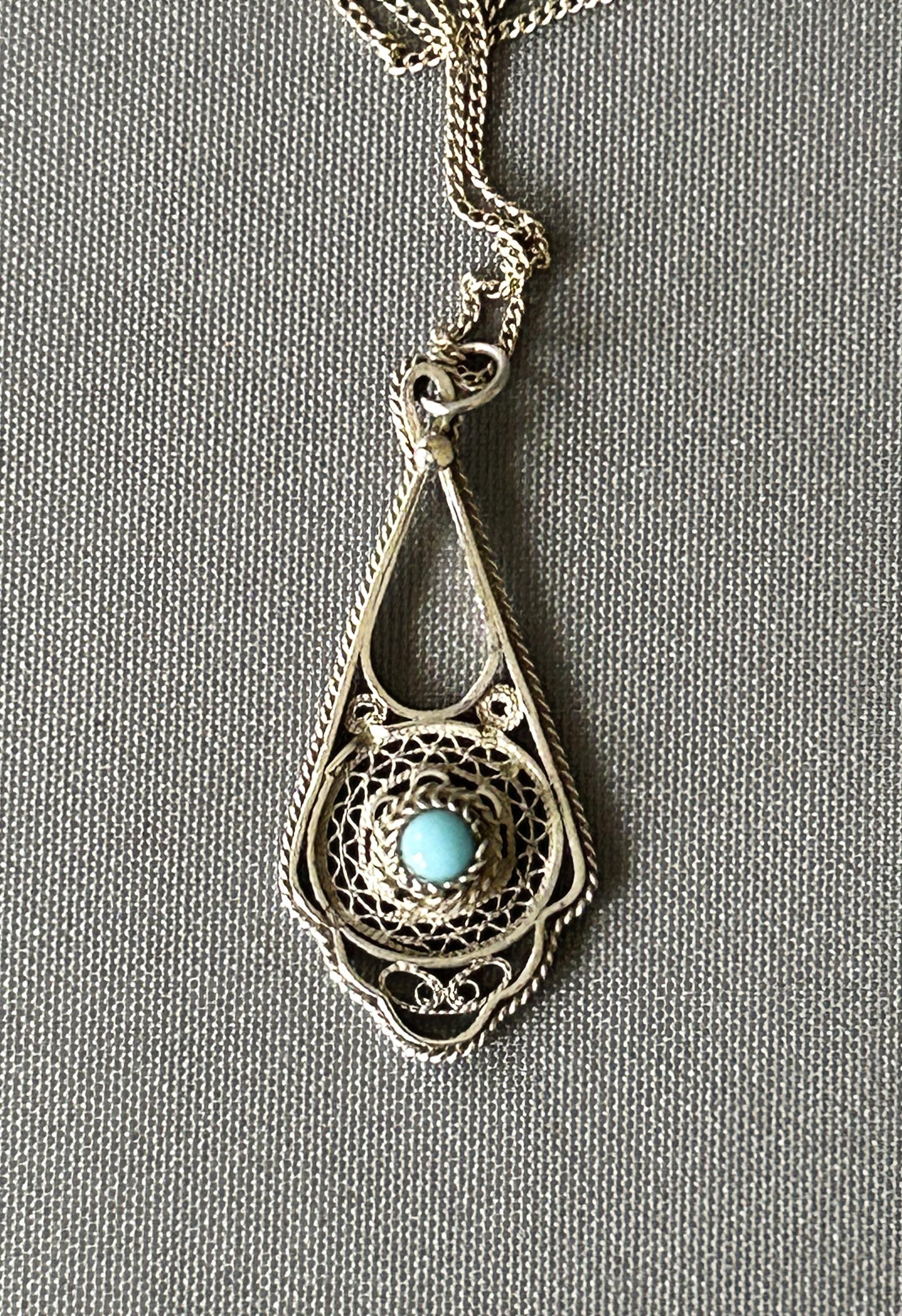 Silver Filigree & Sleeping Beauty Turquoise Pendant Necklace (1 of 5)