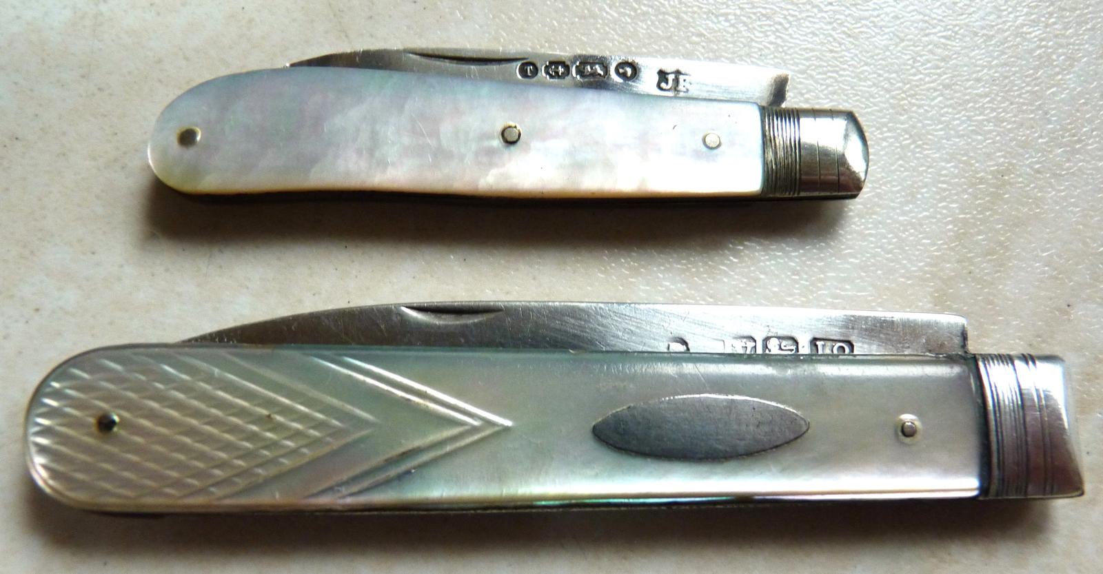 Silver Fruit Knifes: 2 x English Silver Bladed Fruit Knifes, with Mother of Pearl Handles
