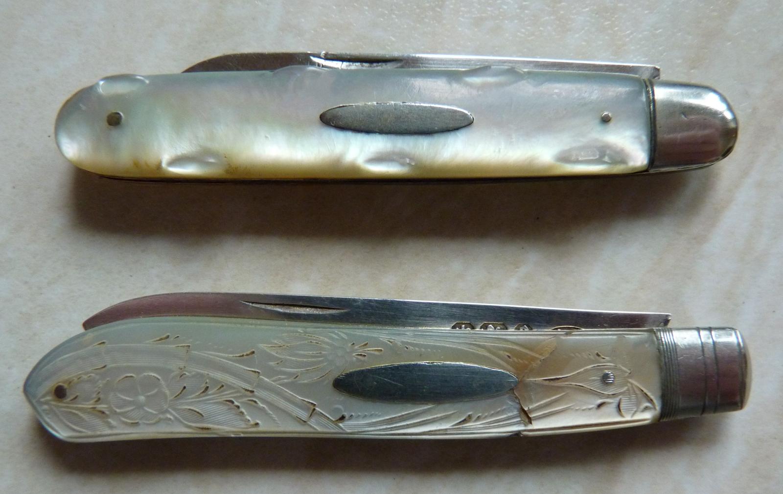 Silver Fruit Knifes: 2 x Victorian Silver Bladed Fruit Knifes, with Mother of Pearl Handles