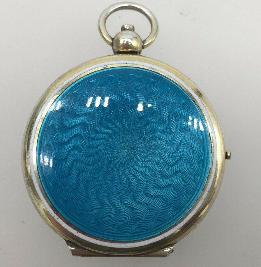 Silver Gilded Guilloche Enamel Pendant Compact Cohen & Charles London c.1920
