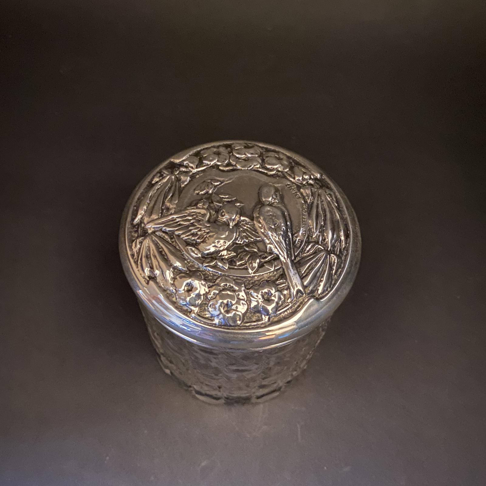 Silver Gilded Repousse Doves Bows & Flowers Vanity Jar