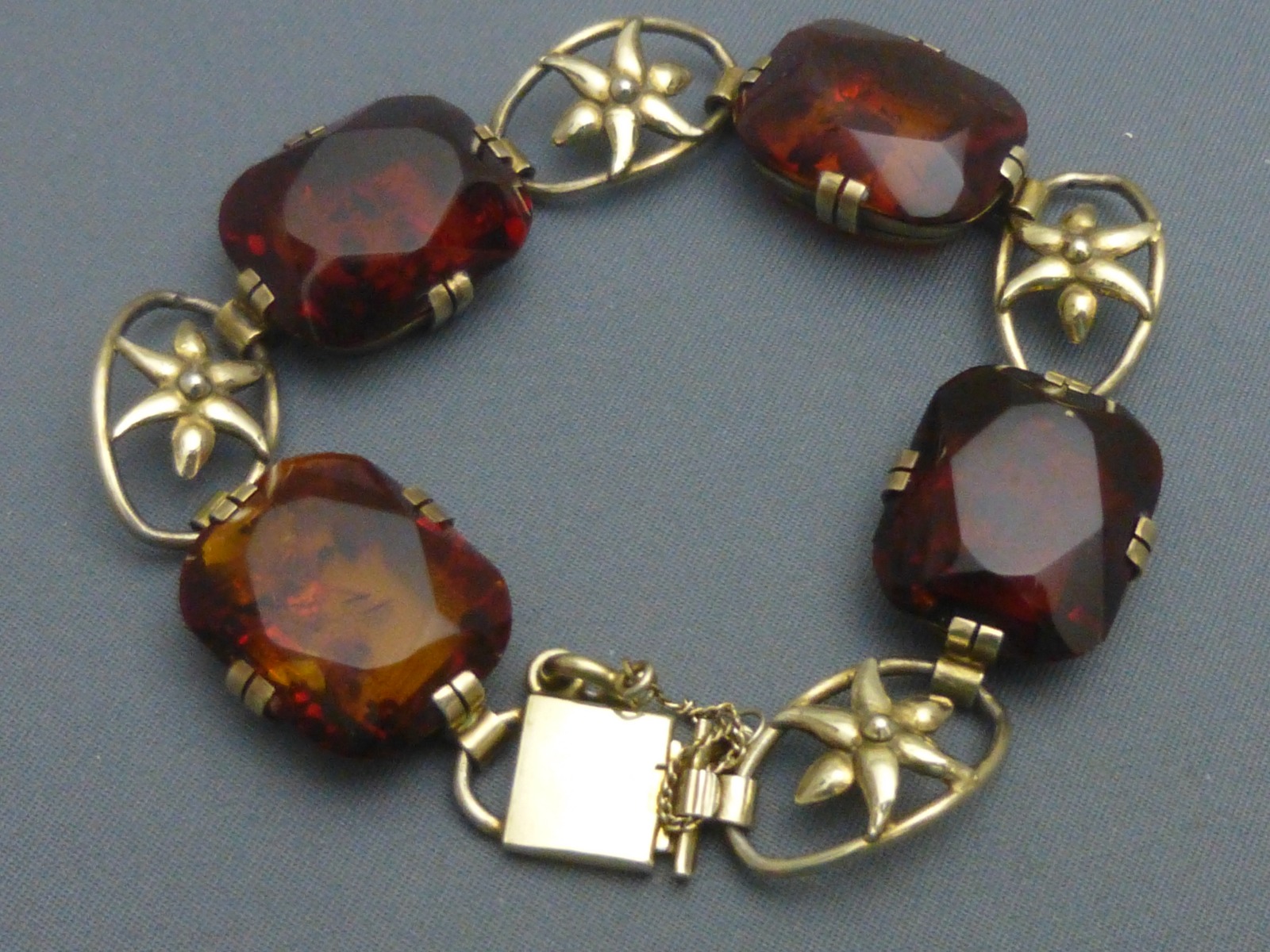 Silver Gilt & Amber Set Bracelet
