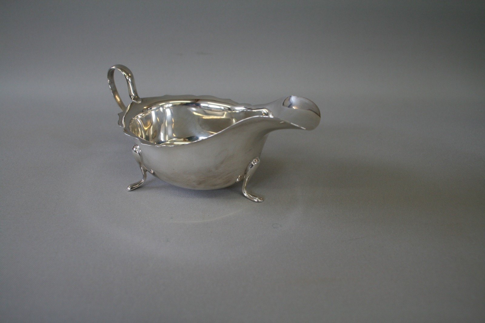 Silver Gravy Boat with a Plain Body with a Scalloped Moulding Around the Rim (1 of 2)