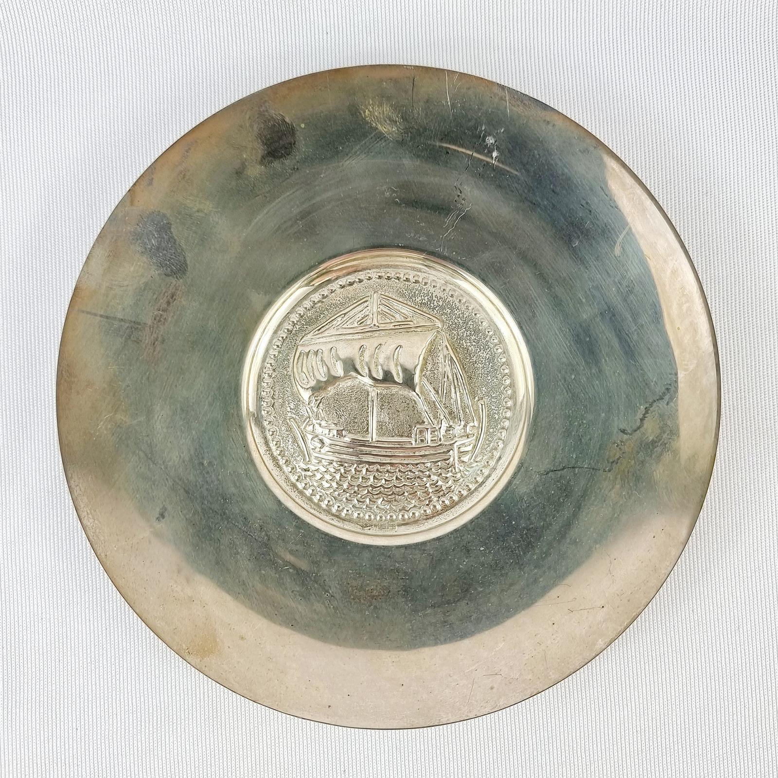 Silver Greek Cypriot Galley or Ship Charger Dish