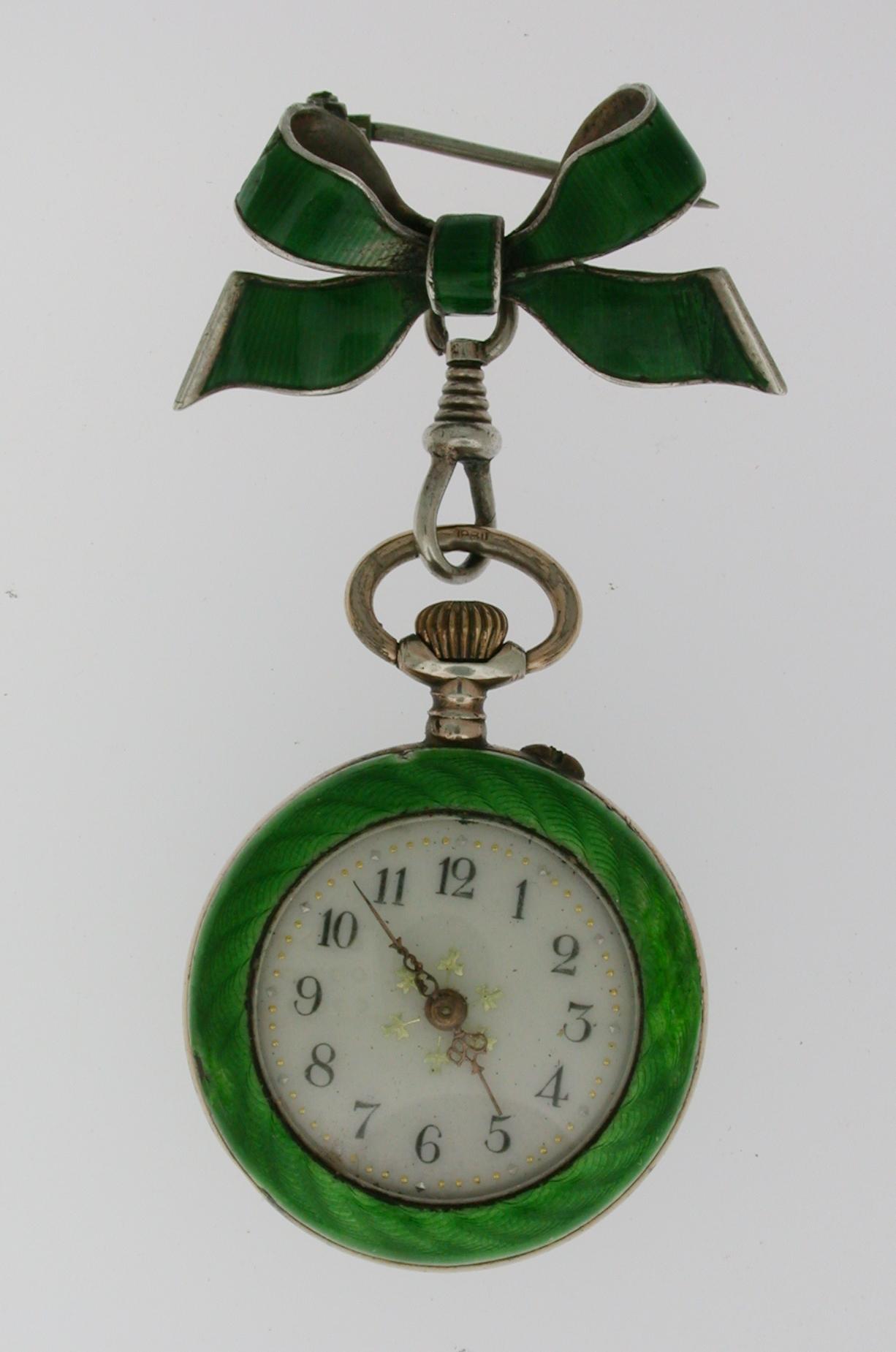 Silver & Green Enamel Pocket Watch Swiss 1900