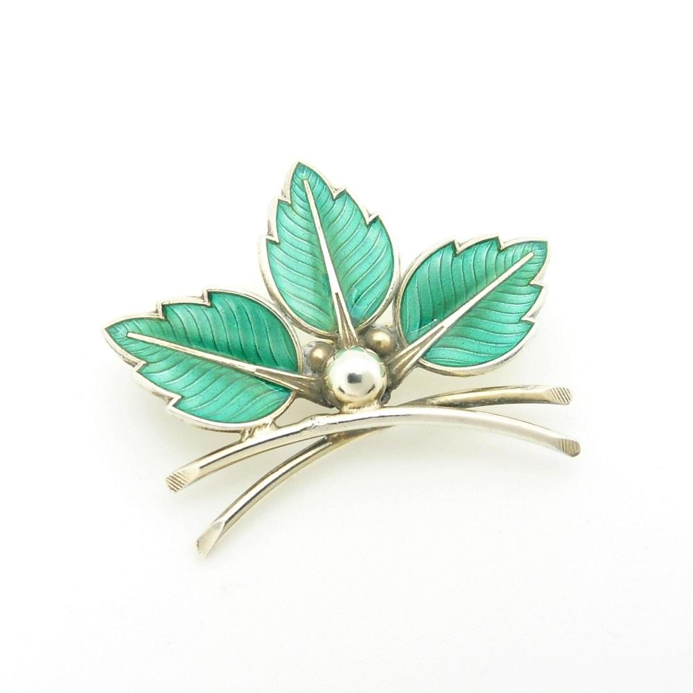 Silver & Green Enamel Three Leaf Brooch by Nils M Elvik