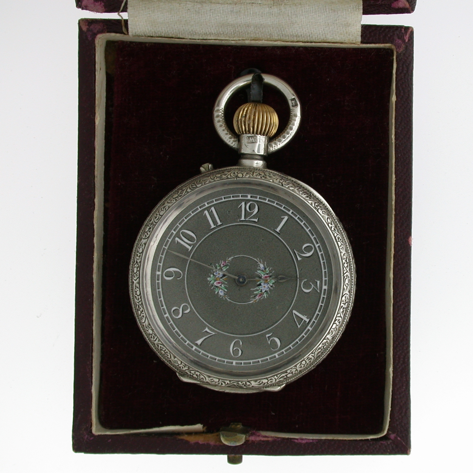 Silver Grey Enamel Dial Open Face Pocket Watch English Hallmark Birmingham 1882