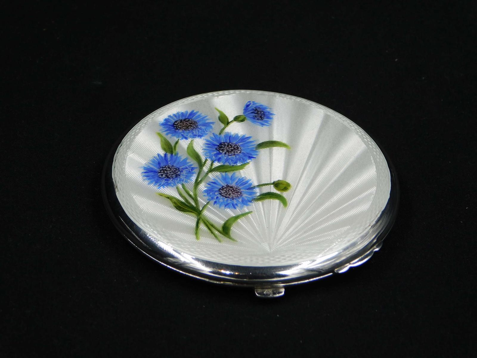 Silver & Guilloche Enamel Powder Compact with Cornflowers