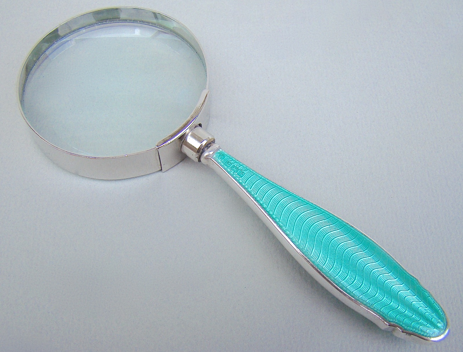 Silver & Guilloche Enamel Small Desk Magnifying Glass by Alexander Clark, Birmingham 1934