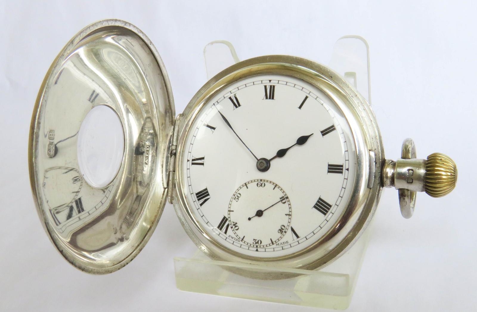 Silver Half Hunter Pocket Watch - Golf Interest 1920s