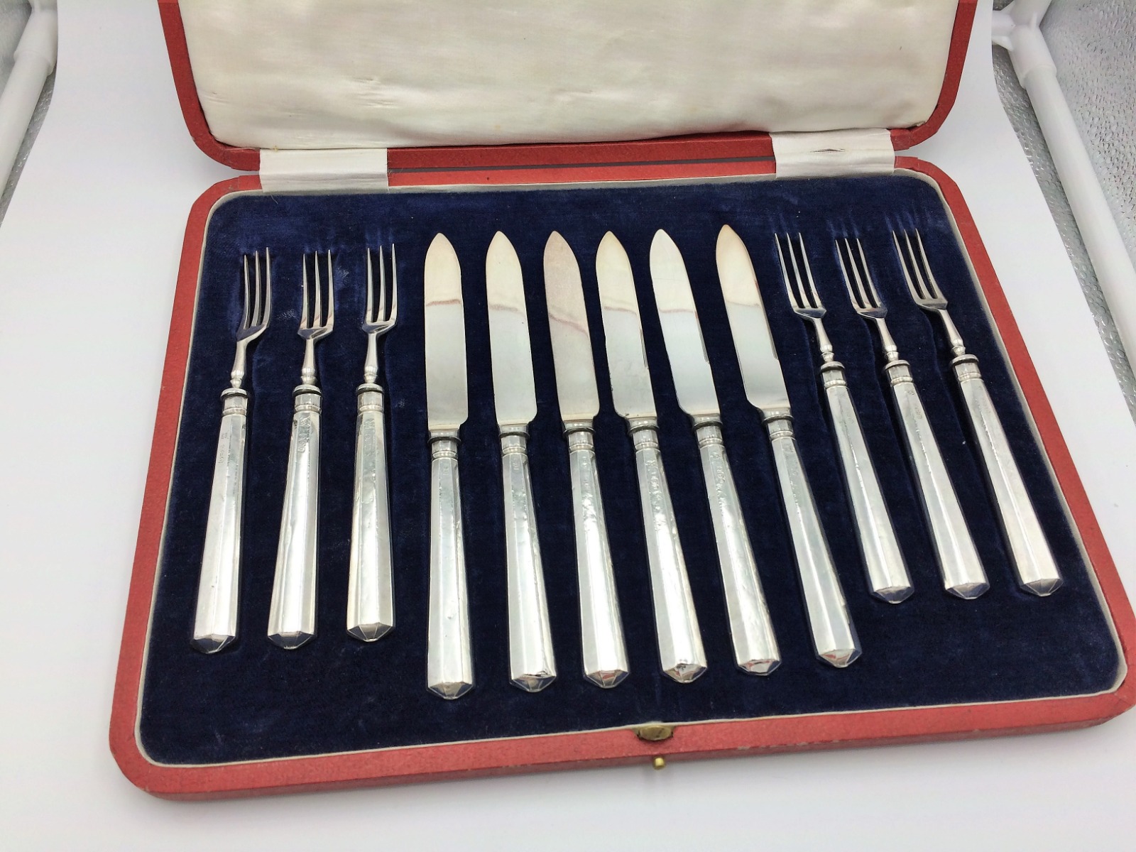 Silver Handled Dessert Fruit Set Art Deco Thomas Bradbury Sheffield 1917