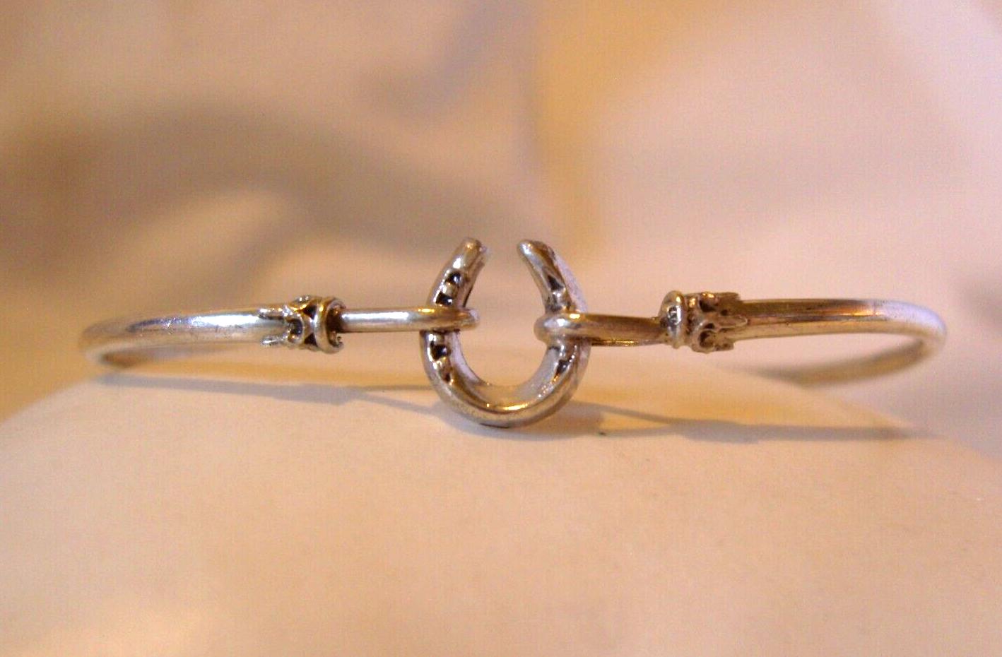Silver Horseshoe Bangle Victorian 1890s Equestrian Bracelet 6 1/2" L