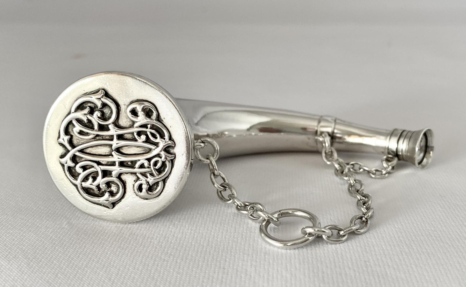 Silver Hunting Horn Vinaigrette / Perfume by Sampson Mordan - London 1872