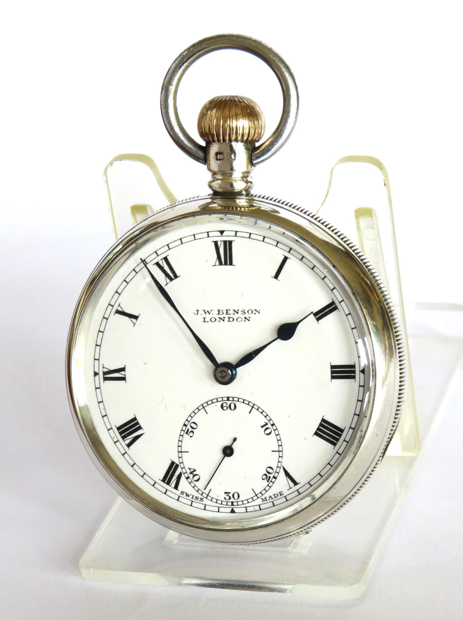 Silver J W Benson Pocket Watch, 1911