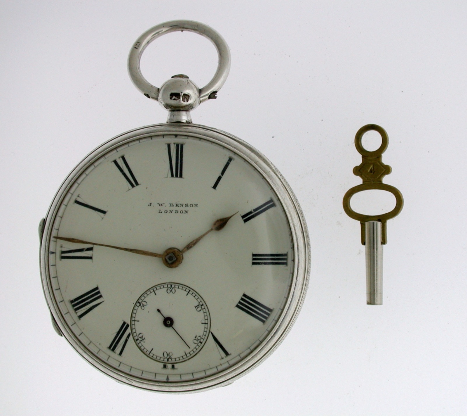 Silver J.W. BENSON London 1876 Open Face Pocket Watch Swiss