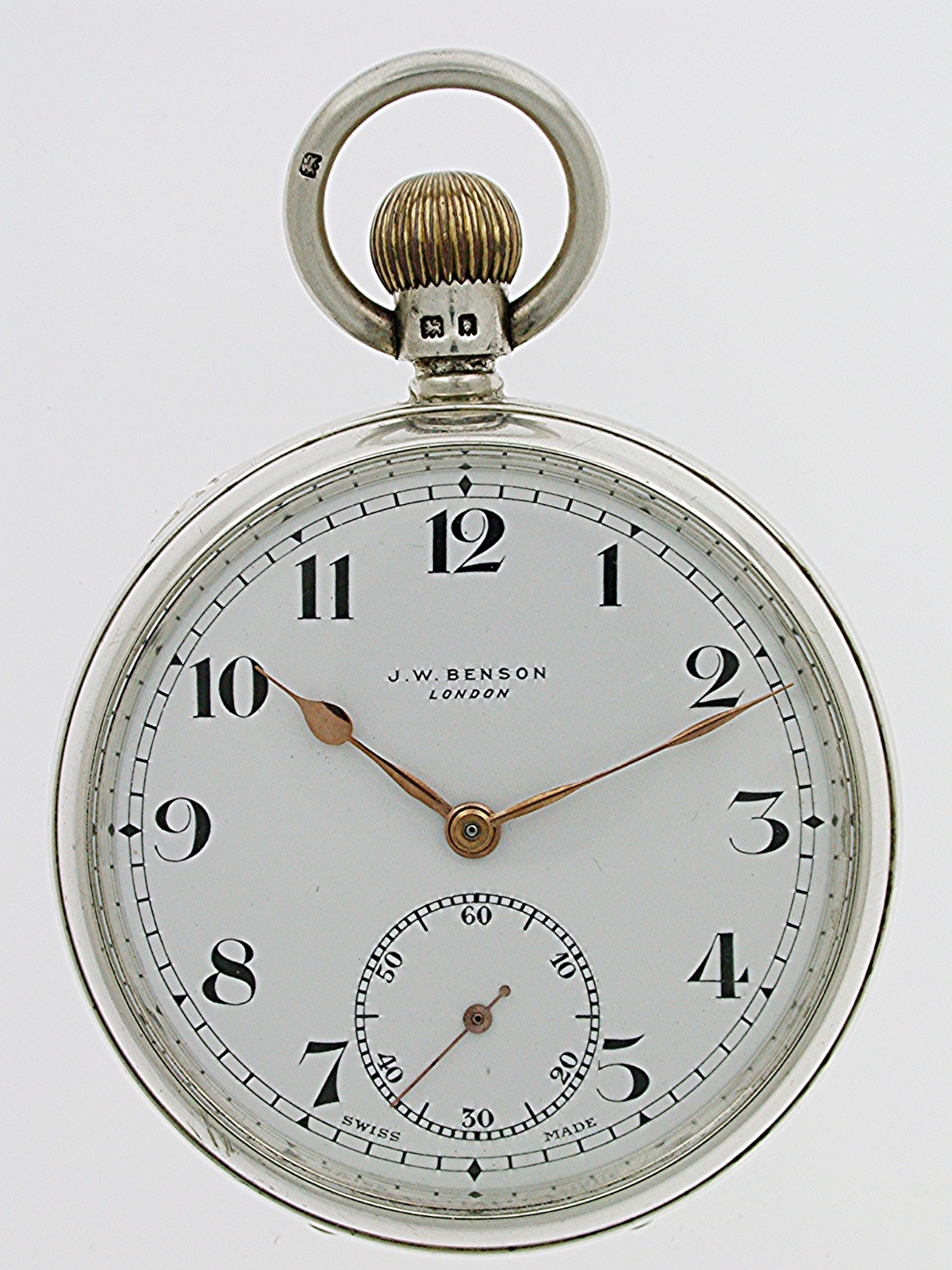 Silver J.W. Benson London 1933 Open Face Pocket Watch Swiss Made (1 of 1)