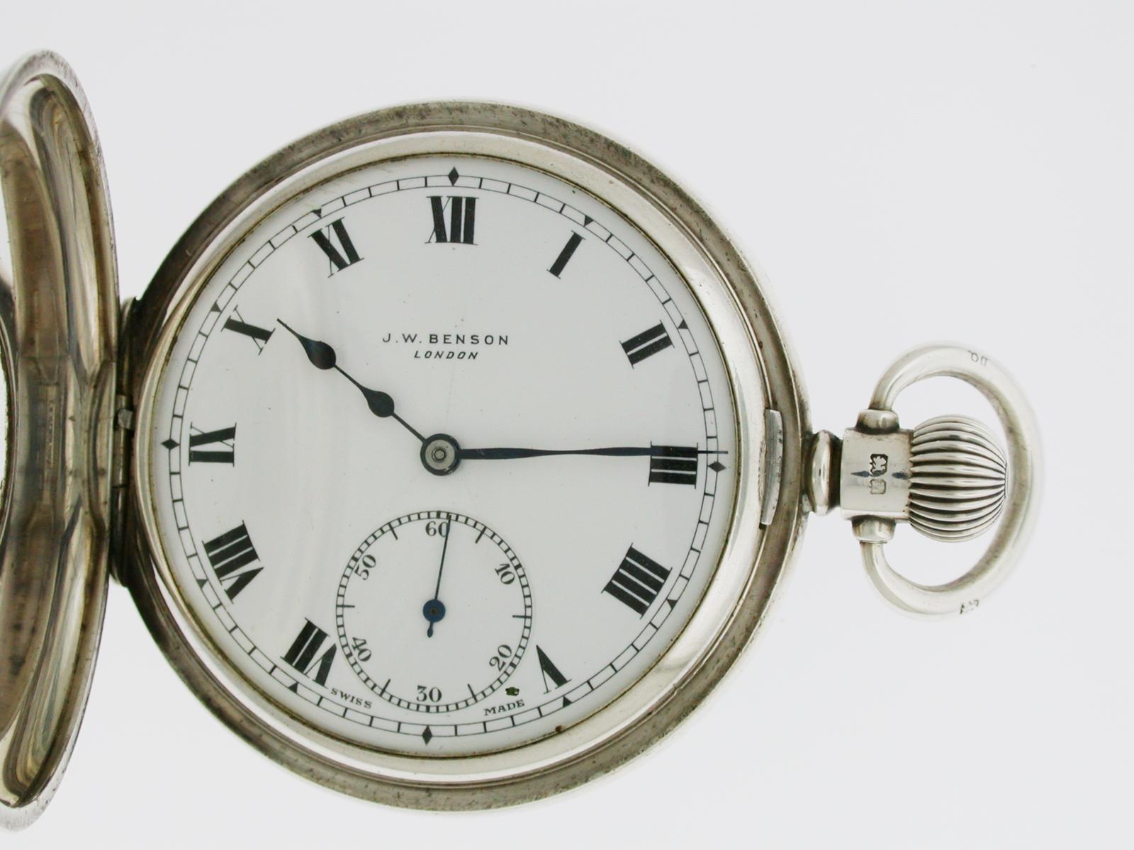 Silver J.W. Benson London – Birmingham 1935 Half Hunter Pocket Watch (1 of 9)