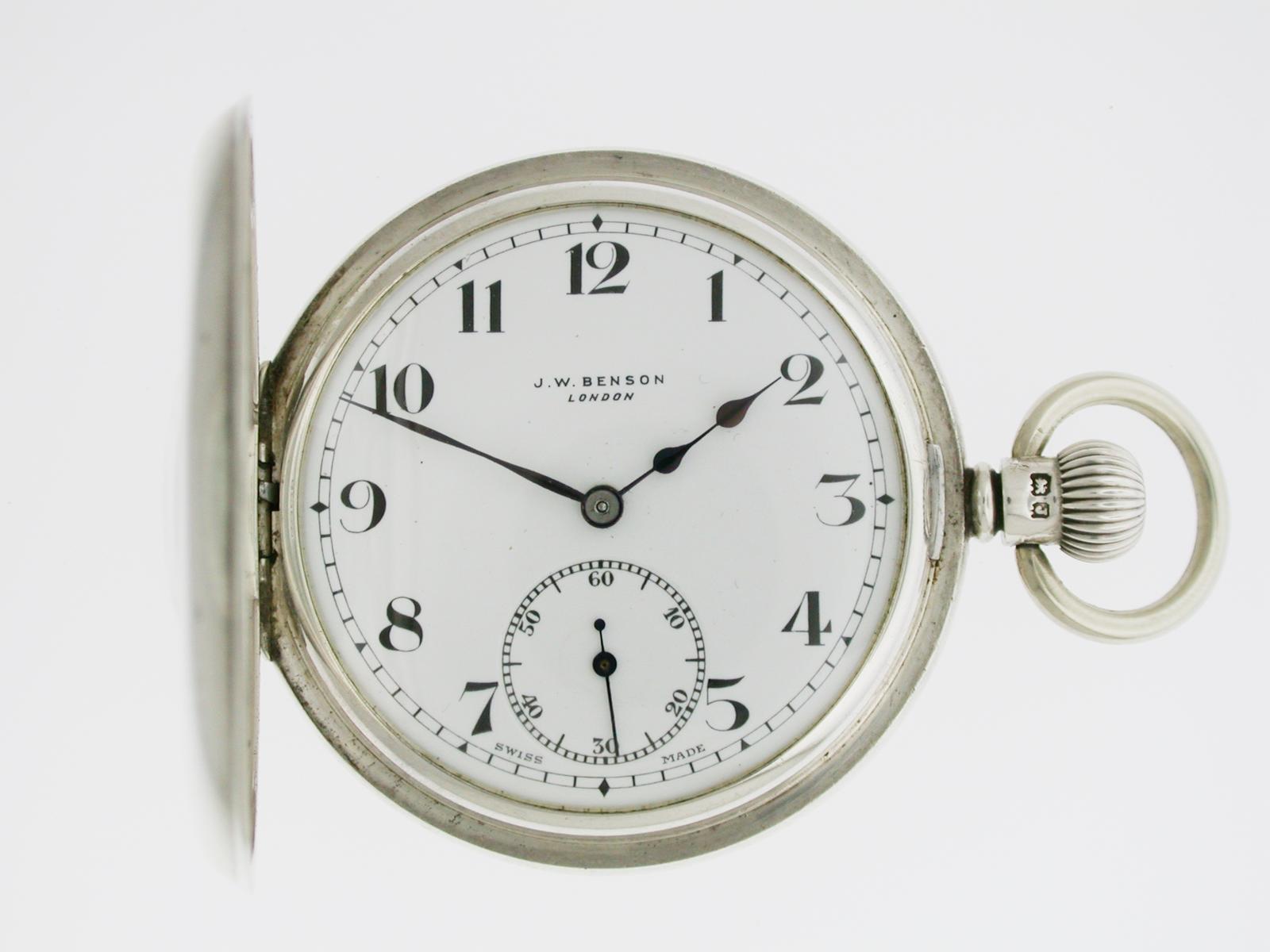 Silver J.W. Benson London  Half Hunter Pocket Watch in Original Box (1 of 12)
