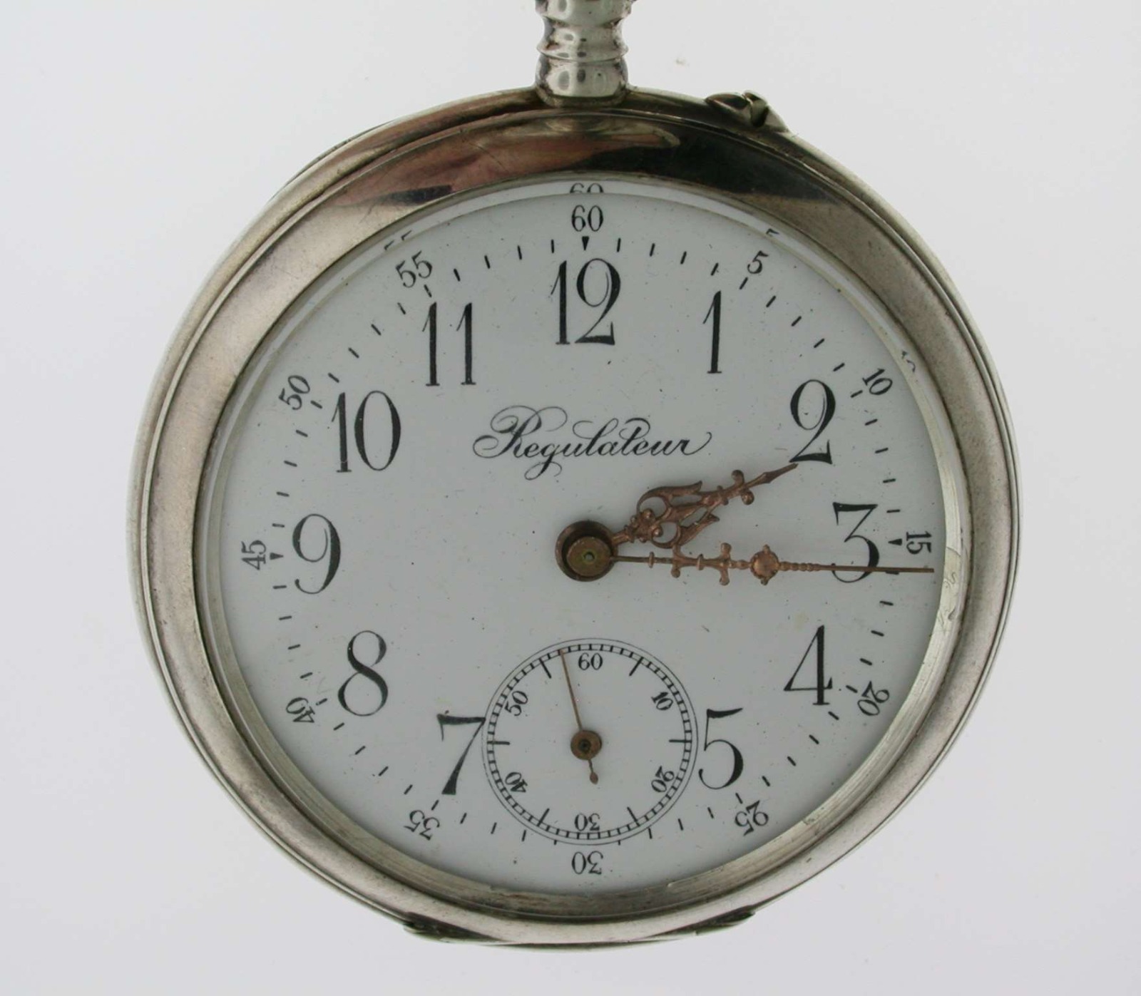 Silver Large Goliath Regulateur Open Face Pocket Watch with Swedish Crest Swiss 1920 (1 of 1)