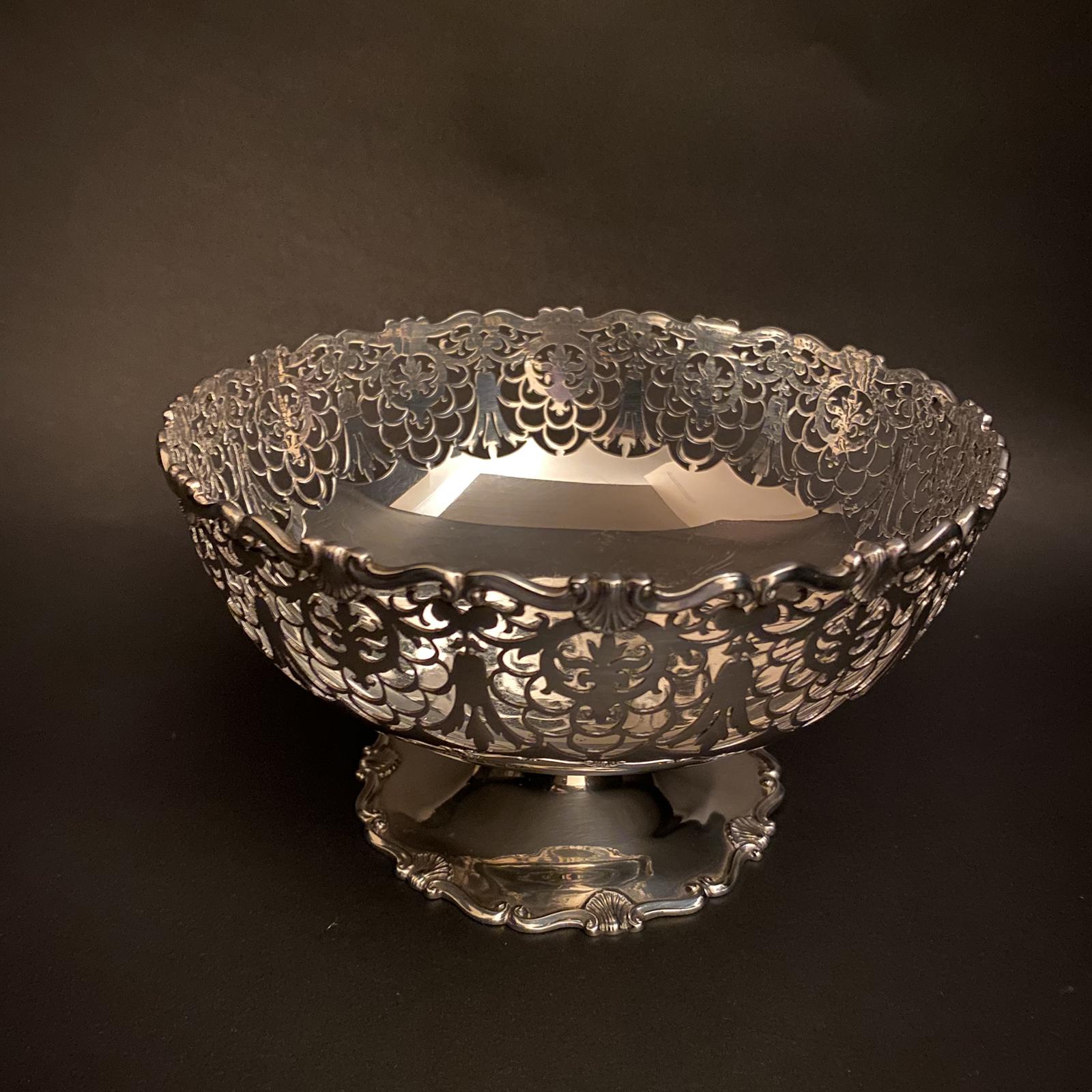 Silver Mappin & Webb Fretwork Pedestal Bowl