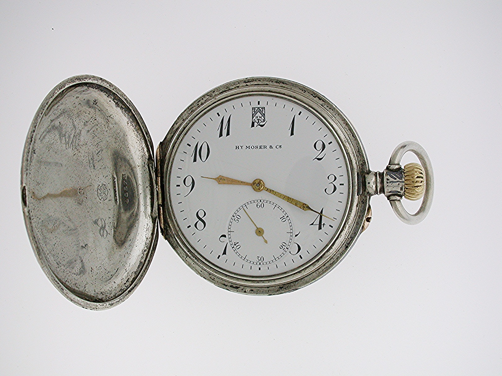 Silver Moser Full Hunter Niello Case Pocket Watch, Swiss 1900
