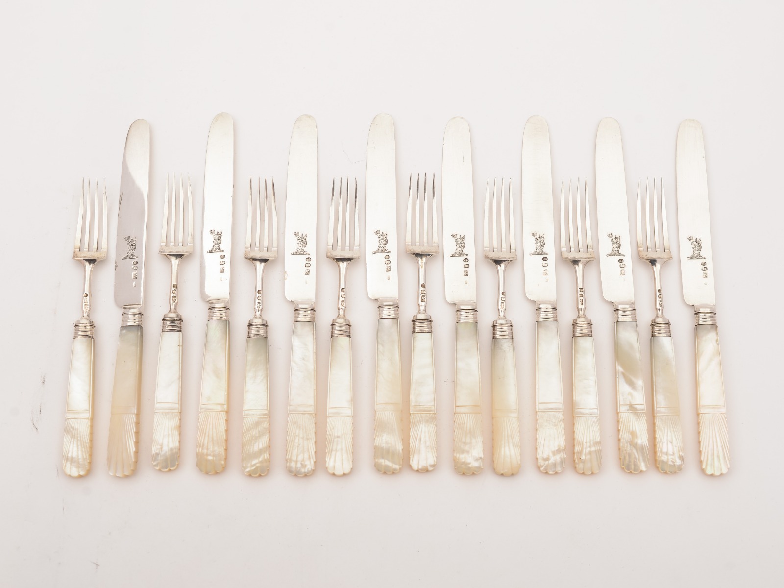 Silver & Mother of Pearl Handled Dessert Set, Sheffield 1821
