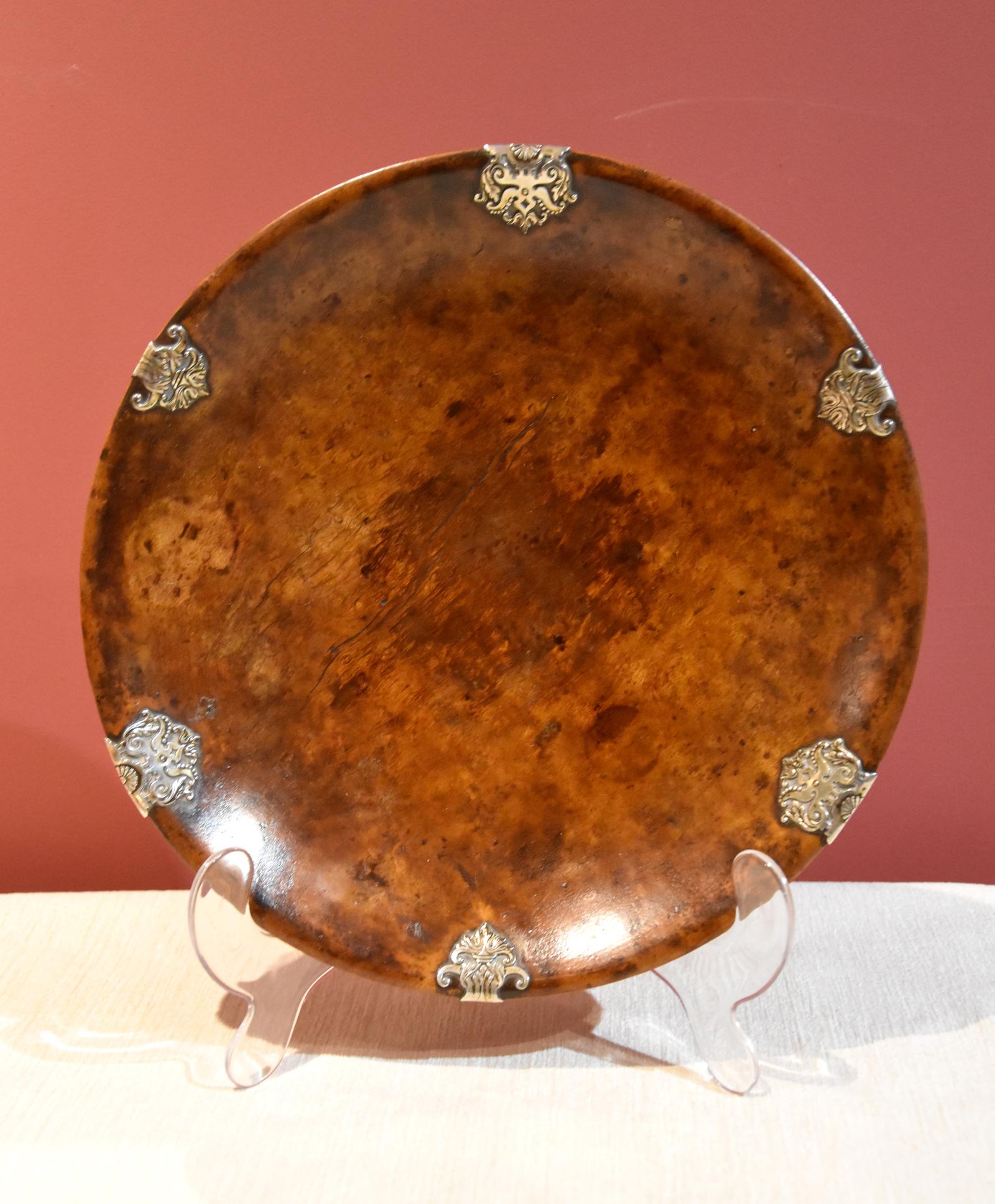 Silver Mounted Burr Walnut Maple Bowl